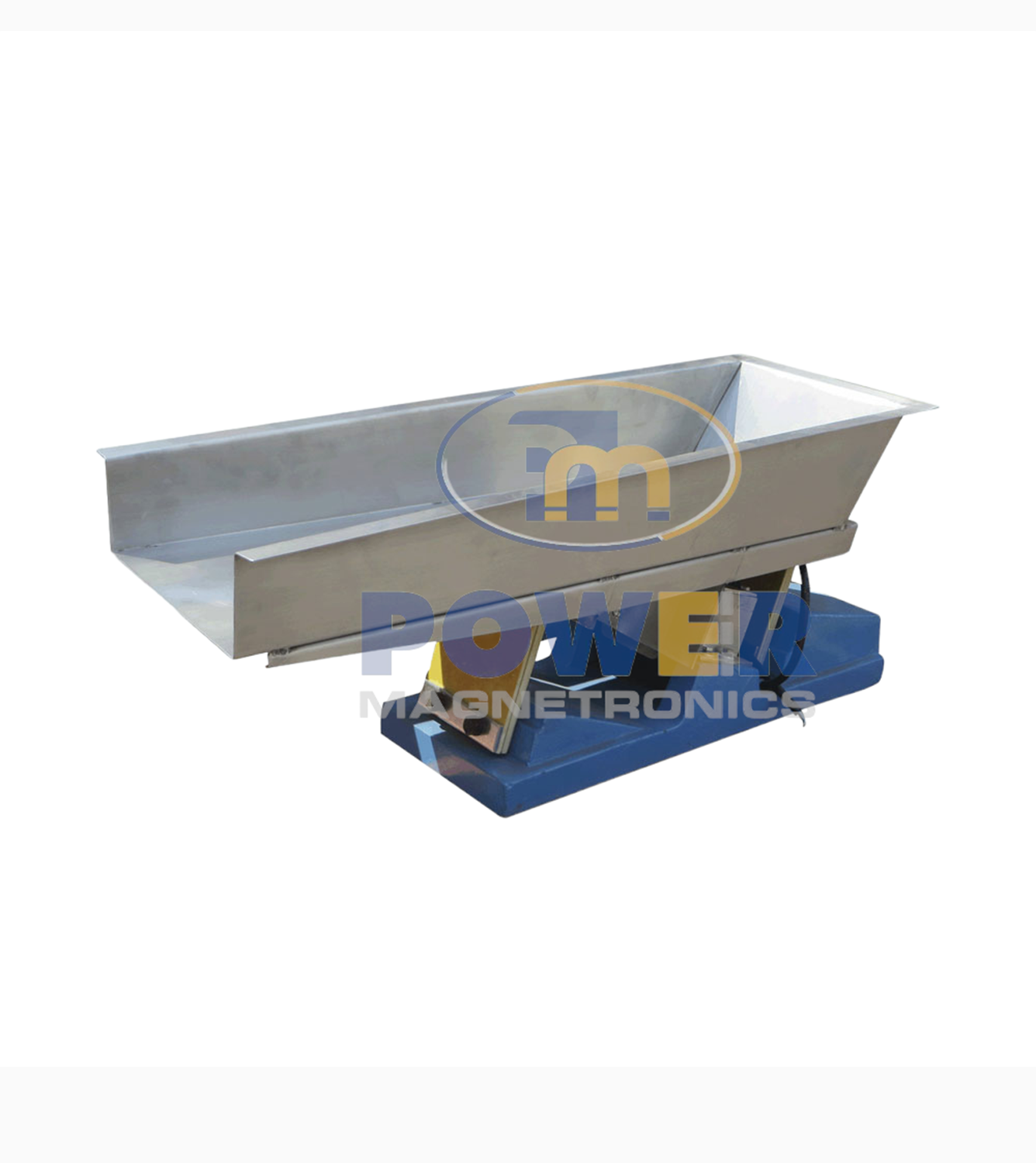 Power Mangetronics make electromagnetic vibratory feeder is a new type of feeding equipment widely used in mining, metallurgy, coal, building materials, chemical, electric power, food, and other industries. It is used for transferred the massive, granular, and powdered materials from storage silo, to the stored material equipment continuously or quantitatively. It adapted to automatic batching, quantitative packaging, and automatic control. It is with the advantages of small size, low noise, lightweight, low power consumption, easy installation, and maintenance.