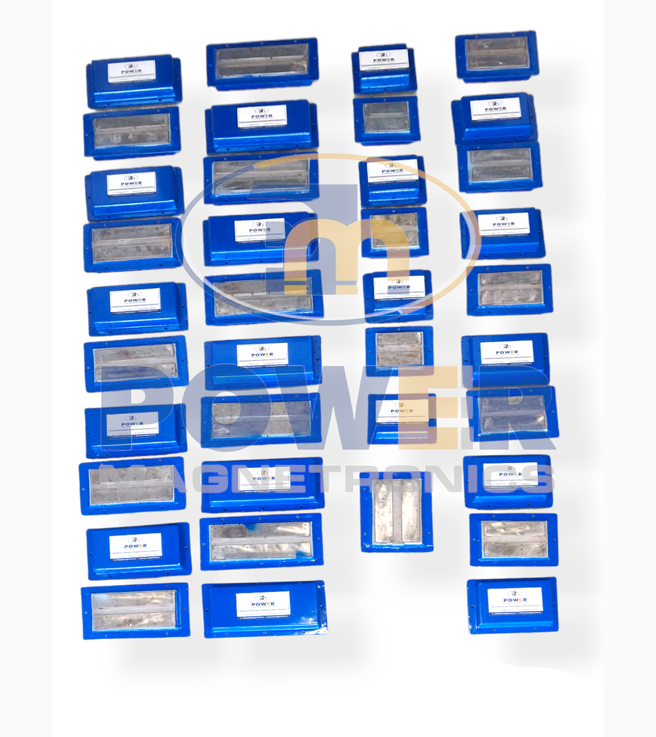 Plate magnets are used for separation of tramp iron found in Tea, Tobacco, Coffee, Cocoa, Milk Powder, and Chemicals, etc. They are extensively used in CTC Tea machinery and in Biscuit stacking machines. They are available in various sizes as per the requirement.