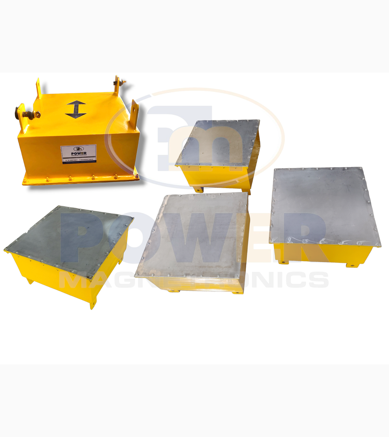 Power Magnetronics make suspension magnet removes undesirable ferromagnetic (Fe) particles - such as iron and steel -from material flows containing relatively little Fe contamination. They are placed above a flat or trough-shaped conveyor belts carrying the material. This system captures ferromagnetic materials from the distance of 300mm/12 inches from feed material which is transported through the production process. The metal particles are drawn out of the raw material flow and held by the magnet. The results in a pure iron fraction suitable for immediate reuse(recycling).