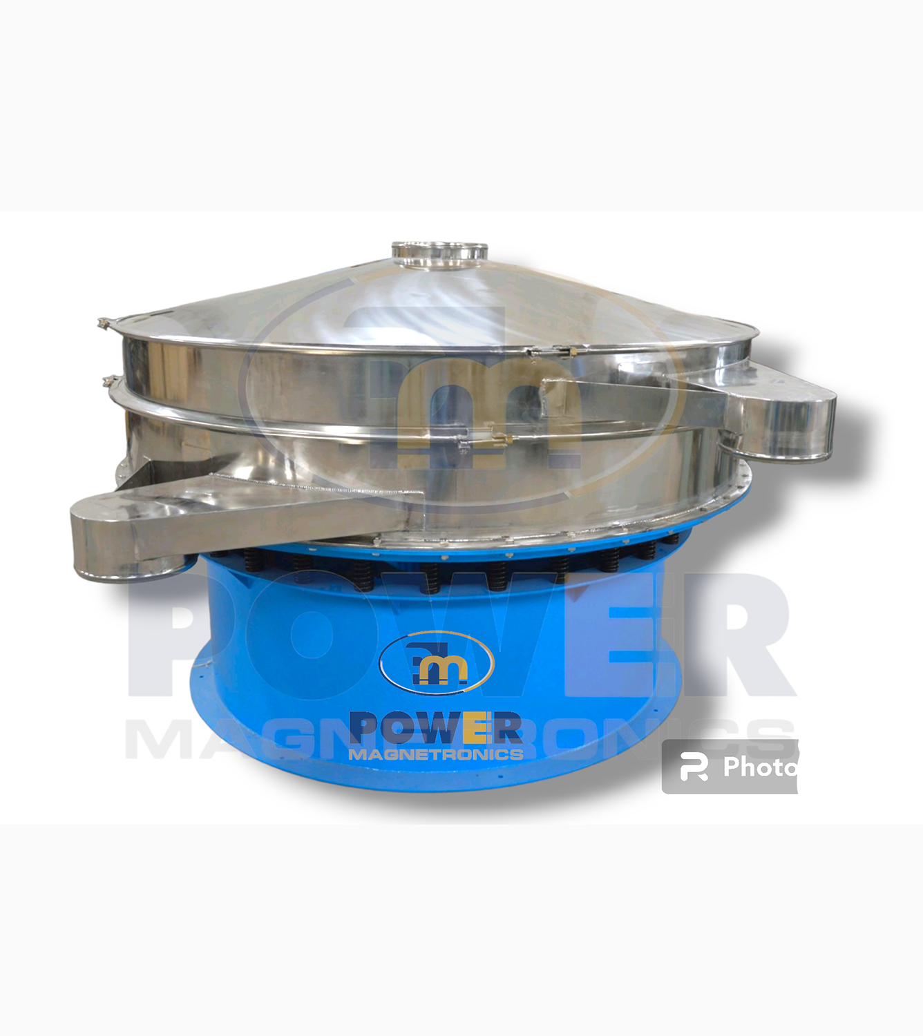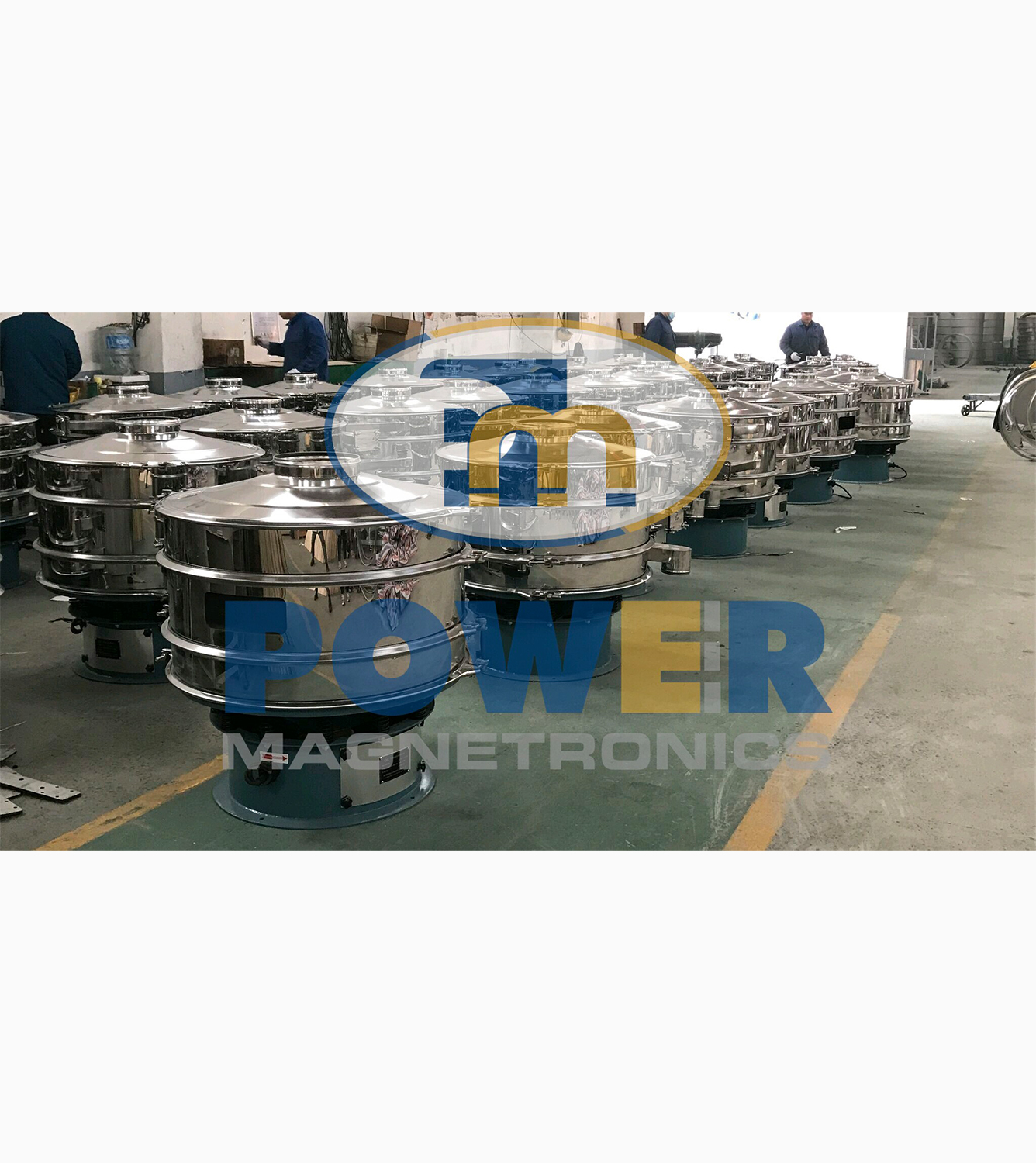 Vibrating screening machine uses electric exciter as a vibrating source, the material will be feed around the screen, at the same time doing forward moves, in order to achieve the screening purpose. Material from the feeder evenly enters into the machine's feeding inlet, with multilayer sieves to produce various products and unqualified products on the screen or under the screen, then discharging from the outlet respectively. It can be used in the automatic production line.