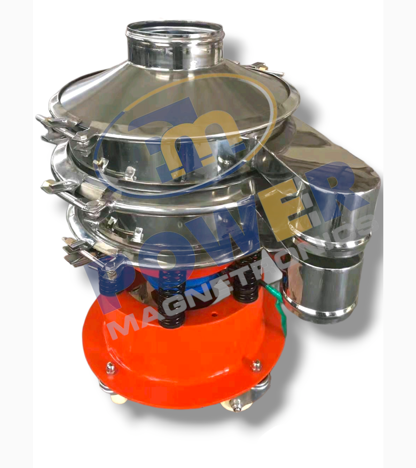Vibratory screening machine is used as a source of vibration excitation by vibrating motor, so that the sieve material being thrown up and forward for linear motion, the material from the feeder evenly into the screening machine feed port, through the multi-screen produce several kinds of specifications on the screen material discharged from their exports respectively. With low energy consumption, high output, simple structure, easy maintenance, fully enclosed structure, no dust, auto-nesting, more suitable for pipelining.